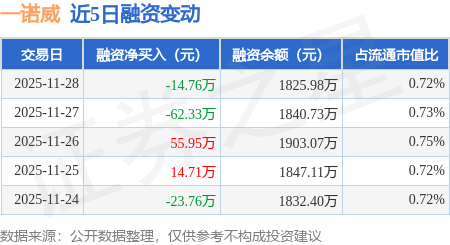 证券之星消息,11月28日,一诺威(920261)融资买入30.09万元,融资偿还44.84万元,融资净卖出14.76万元,融资余额1825.98万元。