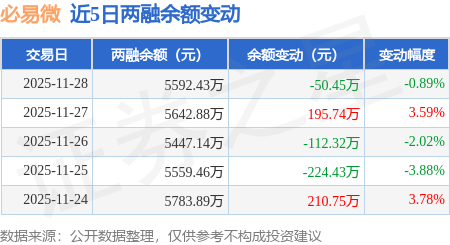 证券之星消息,11月28日,必易微(688045)融资买入419.29万元,融资偿还469.74万元,融资净卖出50.45万元,融资余额5592.43万元。