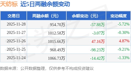 证券之星消息,11月28日,天纺标(920753)融资买入83.84万元,融资偿还141.72万元,融资净卖出57.88万元,融资余额954.7万元,近20个交易日中有12个交易日出现融资净买入。
