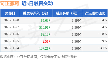 证券之星消息,11月28日,奇正藏药(002287)融资买入337.71万元,融资偿还423.34万元,融资净卖出85.63万元,融资余额1.89亿元。