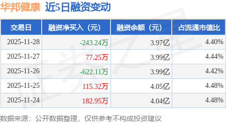 证券之星消息,11月28日,华邦健康(002004)融资买入852.46万元,融资偿还1095.71万元,融资净卖出243.24万元,融资余额3.97亿元。