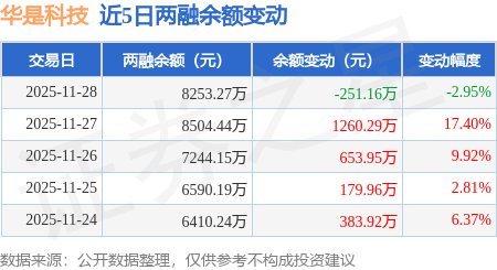 证券之星消息,11月28日,华是科技(301218)融资买入2001.47万元,融资偿还2252.63万元,融资净卖出251.16万元,融资余额8253.27万元,近20个交易日中有11个交易日出现融资净买入。