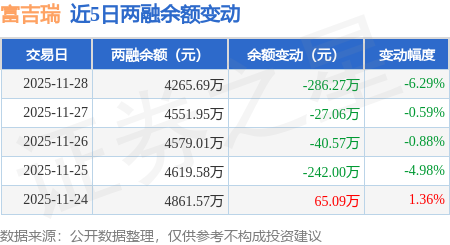 证券之星消息,11月28日,富吉瑞(688272)融资买入160.32万元,融资偿还446.58万元,融资净卖出286.27万元,融资余额4265.69万元。
