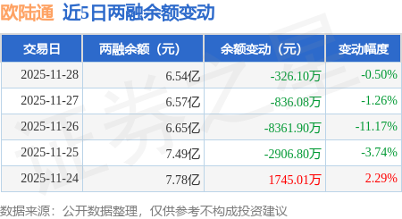 证券之星消息,11月28日,欧陆通(300870)融资买入8935.69万元,融资偿还9268.04万元,融资净卖出332.35万元,融资余额6.52亿元。