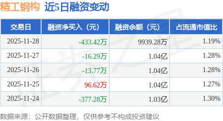 证券之星消息,11月28日,精工钢构(600496)融资买入690.89万元,融资偿还1124.31万元,融资净卖出433.42万元,融资余额9939.28万元。
