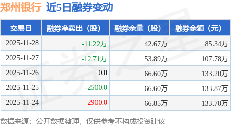 证券之星消息,11月28日,郑州银行(002936)融资买入812.69万元,融资偿还1286.87万元,融资净卖出474.19万元,融资余额4.8亿元。
