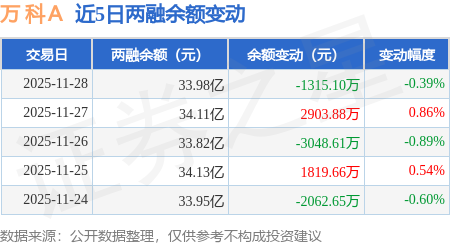 证券之星消息,11月28日,万 科A(000002)融资买入1.84亿元,融资偿还1.94亿元,融资净卖出1075.19万元,融资余额33.79亿元。