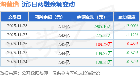 证券之星消息,11月28日,海普瑞(002399)融资买入287.87万元,融资偿还3194.14万元,融资净卖出2906.27万元,融资余额2.13亿元。