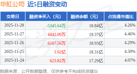 证券之星消息,11月28日,华虹公司(688347)融资买入2.02亿元,融资偿还2.55亿元,融资净卖出5345.64万元,融资余额18.84亿元。
