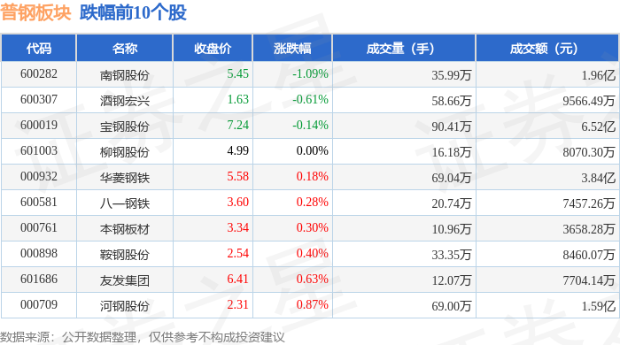 证券之星消息,12月1日普钢板块较上一交易日上涨0.92%,三钢闽光领涨。当日上证指数报收于3914.01,上涨0.65%。深证成指报收于13146.72,上涨1.25%。普钢板块个股涨跌见下表: