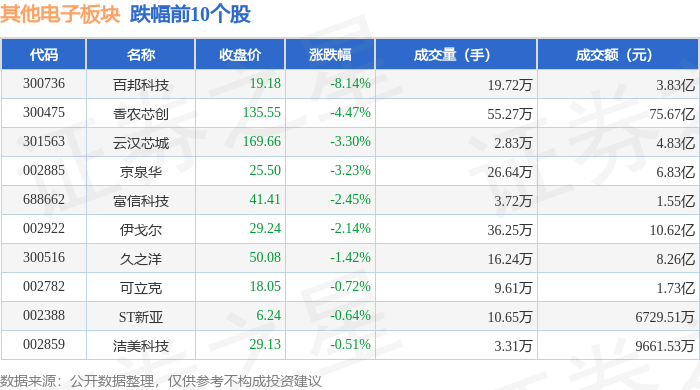 从资金流向上来看,当日其他电子板块主力资金净流出7.04亿元,游资资金净流入3.95亿元,散户资金净流入3.09亿元。其他电子板块个股资金流向见下表: