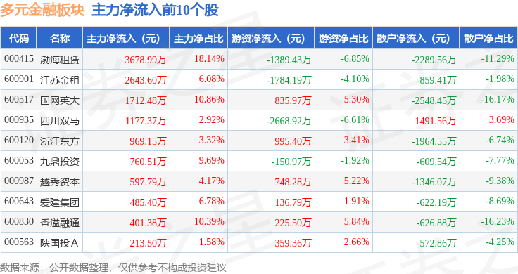 从资金流向上来看,当日多元金融板块主力资金净流出1.26亿元,游资资金净流入2498.82万元,散户资金净流入1.01亿元。多元金融板块个股资金流向见下表: