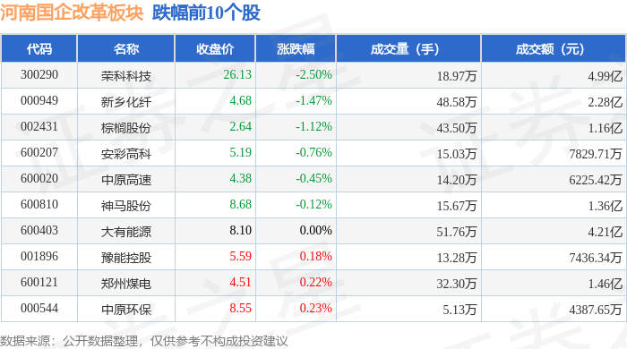 从资金流向上来看,当日河南国企改革板块主力资金净流出2.71亿元,游资资金净流入1.28亿元,散户资金净流入1.44亿元。河南国企改革板块个股资金流向见下表: