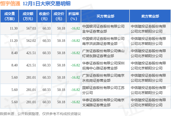 证券之星消息,12月1日恒宇信通发生大宗交易,交易数据如下: