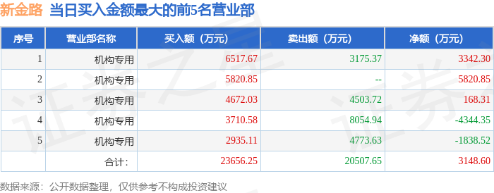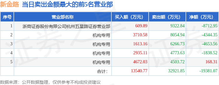 证券之星消息,沪深交易所2025年12月1日公布的交易公开信息显示,新金路(000510)因日换手率达到20%的前5只证券登上龙虎榜。此次是近5个交易日内第3次上榜。