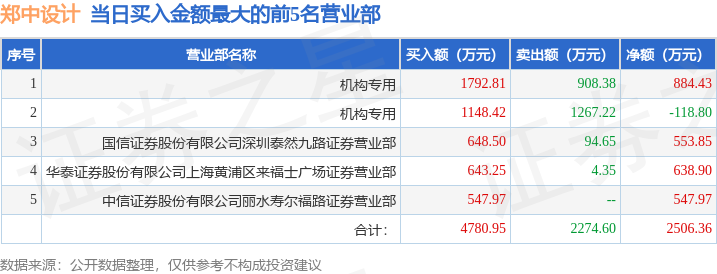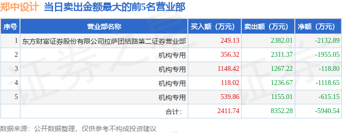 证券之星消息,沪深交易所2025年12月1日公布的交易公开信息显示,郑中设计(002811)因日跌幅偏离值达到7%的前5只证券登上龙虎榜。此次是近5个交易日内第2次上榜。