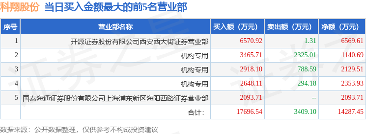 从龙虎榜公布的当日买卖数据来看,机构合计净买入5082.69万元。章盟主等知名游资榜上有名。(知名游资章盟主一般指国泰海通证券股份有限公司上海浦东新区海阳西路证券营业部席位,根据市场资料整理,仅供参考)