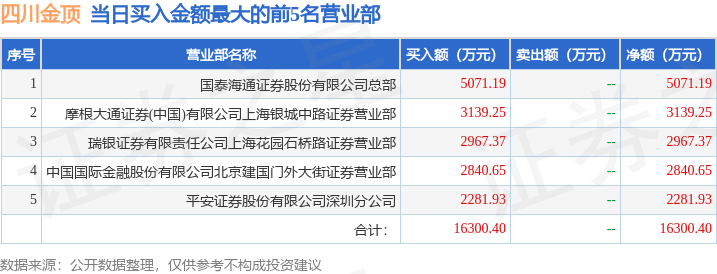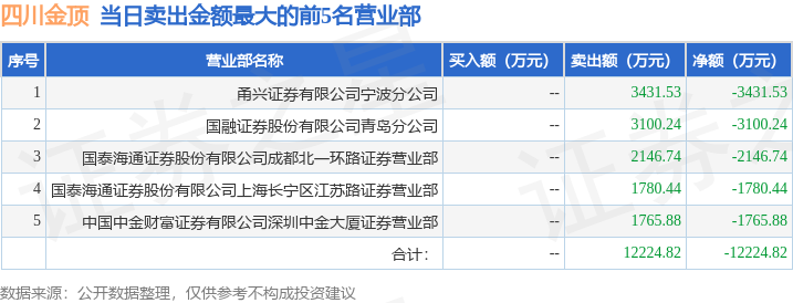 证券之星消息,沪深交易所2025年12月1日公布的交易公开信息显示,四川金顶(600678)因有价格涨跌幅限制的日换手率达到20%的前五只证券登上龙虎榜。此次是近5个交易日内第1次上榜。