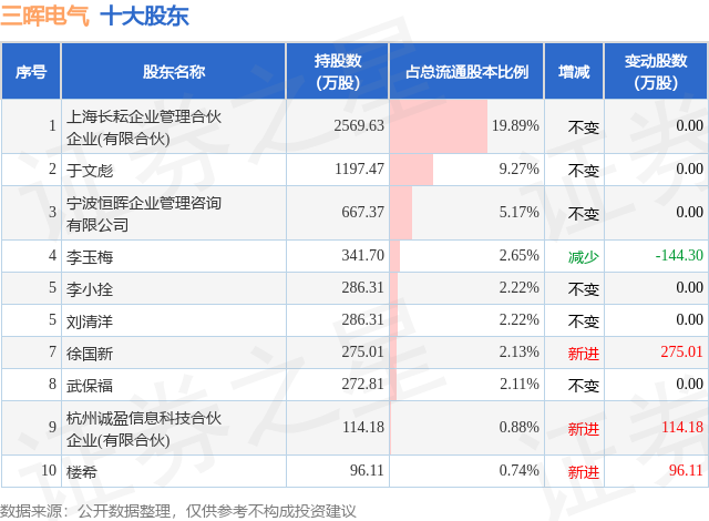 根据三晖电气2025年三季报公布的十大股东详情如下: