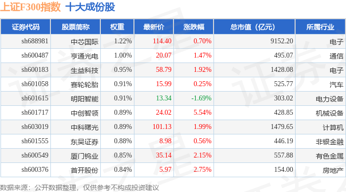 证券之星消息,12月1日,上证F300(000099)指数报收于8926.65点,涨0.96%,成交1406.55亿元,换手率1.21%。当日该指数成份股中,上涨的有216家,和邦生物以10.05%的涨幅领涨,下跌的有72家,阿特斯以6.92%的跌幅领跌。