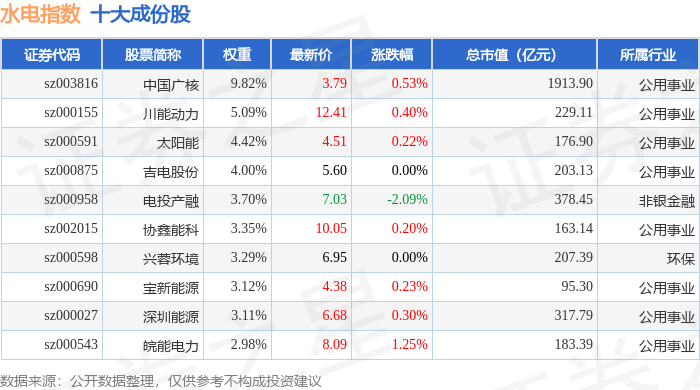 水电指数(399234)十大成份股详情如下: