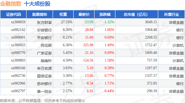 资金流向方面,金融指数(399240)成份股当日主力资金净流出合计11.88亿元,游资资金净流入合计1.89亿元,散户资金净流入合计9.99亿元。成份股资金流向详情见下表: