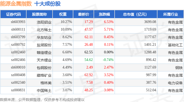 近10日内能源金属(399366)指数成份股做了调整,新纳入了3只股票。