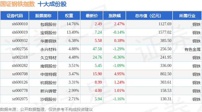 近10日内国证钢铁(399440)指数成份股做了调整,新纳入了3只股票。