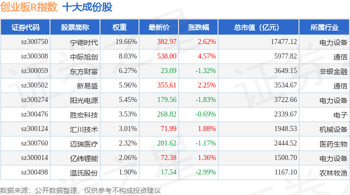 资金流向方面,创业板R(399606)指数成份股当日主力资金净流出合计13.76亿元,游资资金净流出合计9894.97万元,散户资金净流入合计14.75亿元。成份股资金流向详情见下表:
