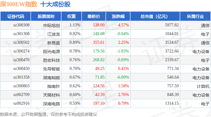 证券之星消息,12月1日,深300EW(399633)指数报收于6016.03点,涨1.12%,成交3612.68亿元,换手率1.38%。当日该指数成份股中,上涨的有220家,北京君正以20.0%的涨幅领涨,下跌的有67家,湖南裕能以6.09%的跌幅领跌。