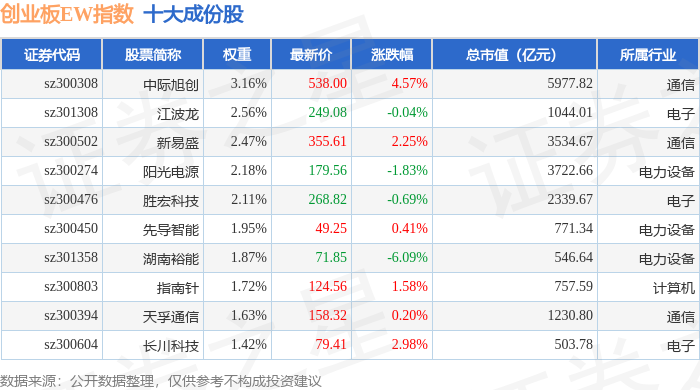 证券之星消息,12月1日,创业板EW(399635)指数报收于2061.02点,涨1.04%,成交1762.1亿元,换手率2.72%。当日该指数成份股中,上涨的有69家,北京君正以20.0%的涨幅领涨,下跌的有28家,湖南裕能以6.09%的跌幅领跌。