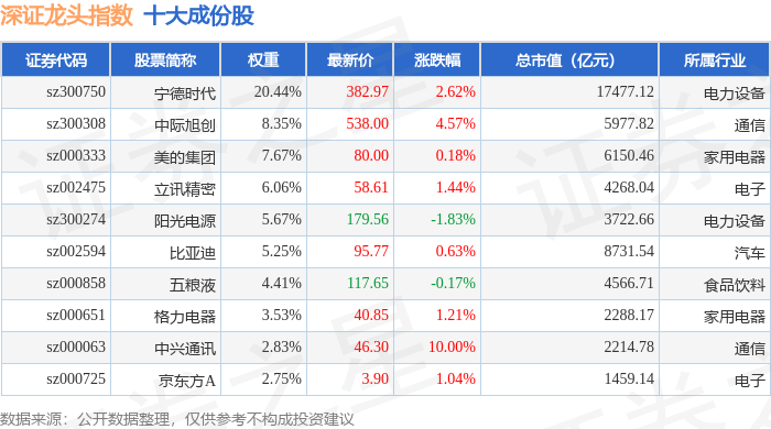 深证龙头(399653)指数十大成份股详情如下: