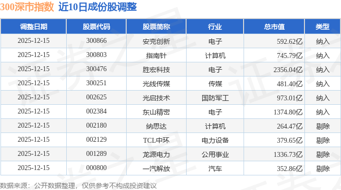 近10日内300深市(399972)指数成份股做了调整,新纳入了6只股票,剔除了4只股票。