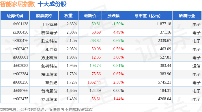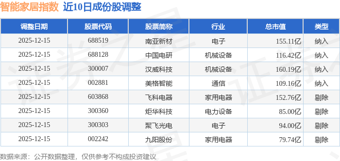 近10日内智能家居(399996)指数成份股做了调整,新纳入了4只股票,剔除了4只股票。