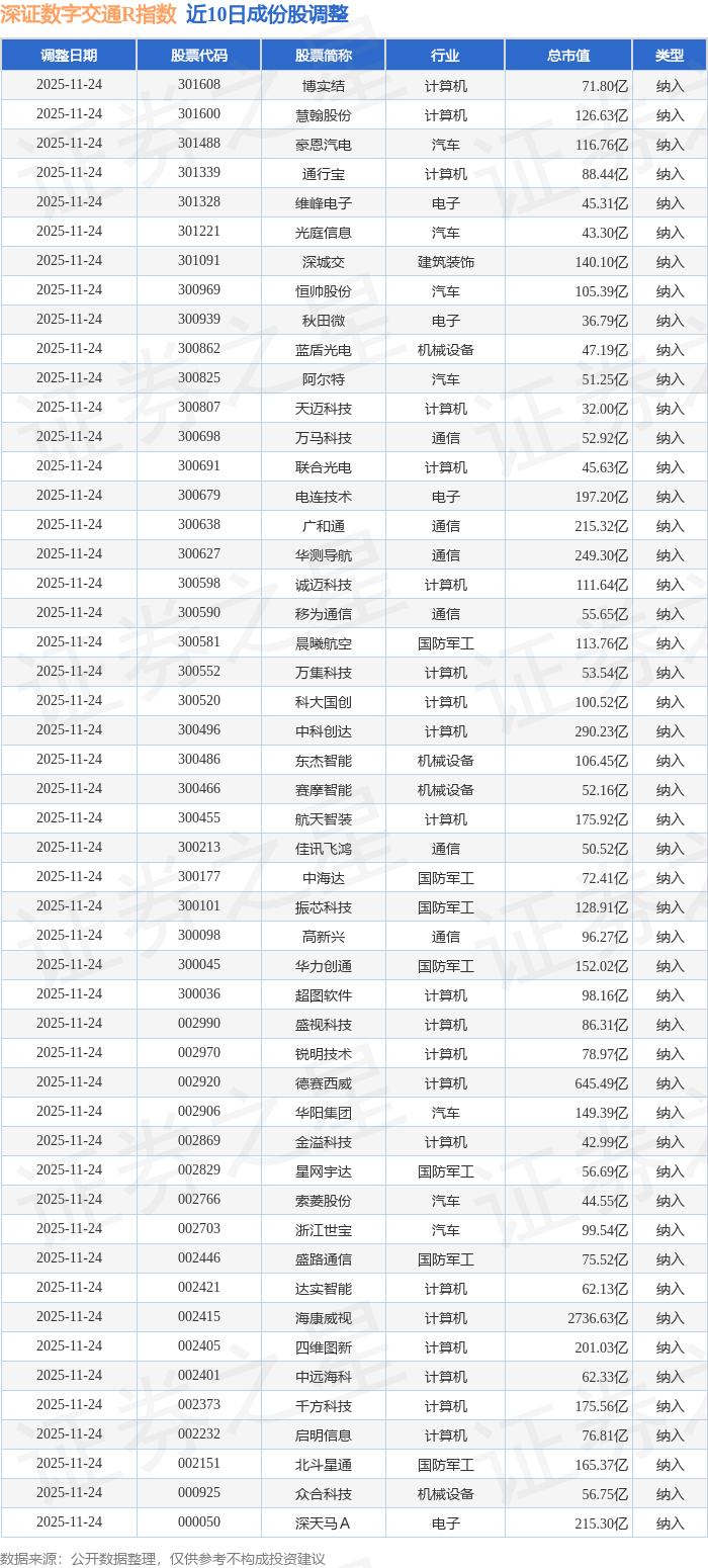 近10日内深证数字交通R(470049)指数成份股做了调整,新纳入了50只股票。