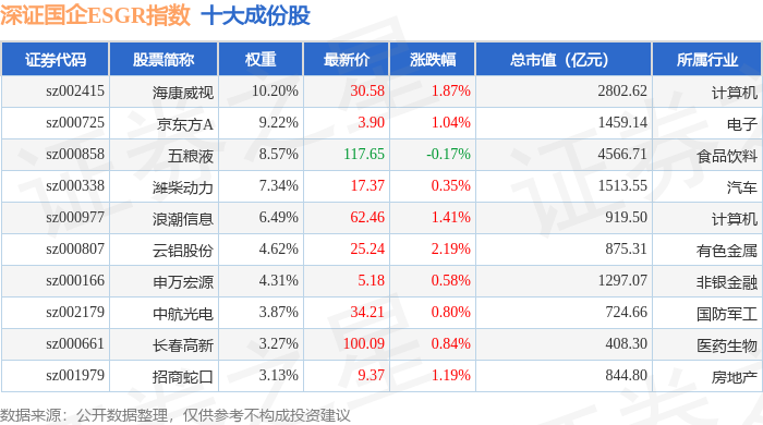 深证国企ESGR(470055)指数十大成份股详情如下:
