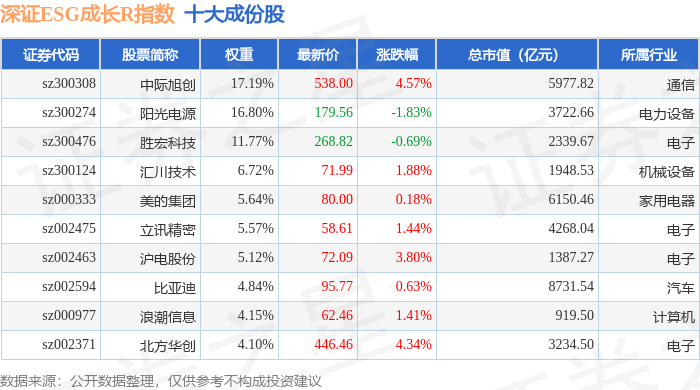 深证ESG成长R(470060)指数十大成份股详情如下: