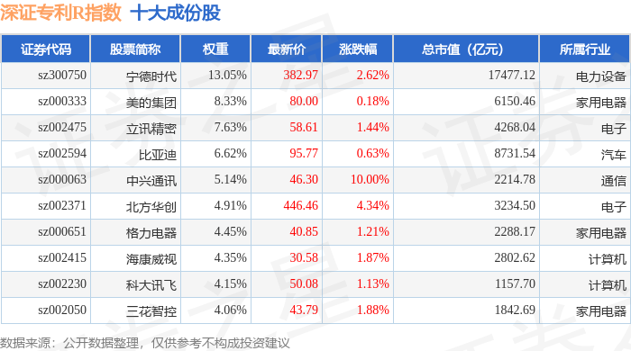 深证专利R(470067)指数十大成份股详情如下: