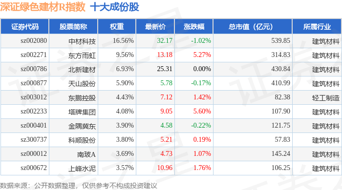 深证绿色建材R(470077)指数十大成份股详情如下: