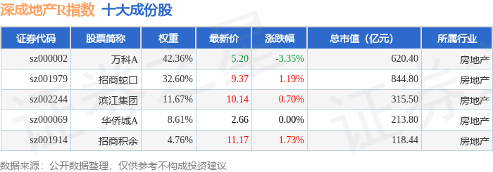 深成地产R(471001)指数十大成份股详情如下: