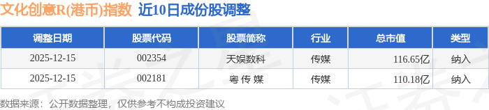 近10日内文化创意R(港币)(480047)指数成份股做了调整,新纳入了2只股票。