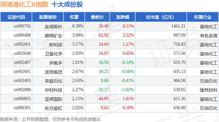 深港通化工R(483063)指数十大成份股详情如下: