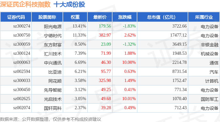 深证民企科技(970059)指数十大成份股详情如下: