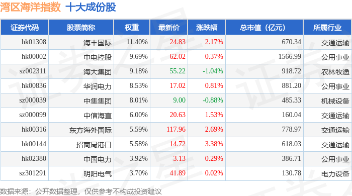 近10日内湾区海洋(980019)指数成份股做了调整,新纳入了2只股票。