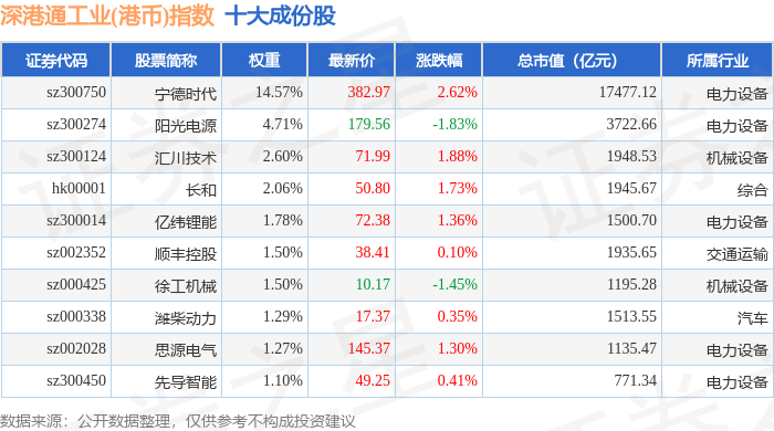 深港通工业(港币)(983018)指数十大成份股详情如下:
