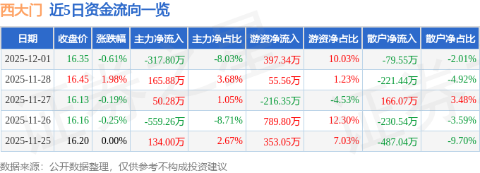 12月1日的资金流向数据方面,主力资金净流出317.8万元,占总成交额8.03%,游资资金净流入397.34万元,占总成交额10.03%,散户资金净流出79.55万元,占总成交额2.01%。