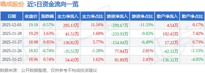 12月1日的资金流向数据方面,主力资金净流入295.13万元,占总成交额11.16%,游资资金净流出299.67万元,占总成交额11.33%,散户资金净流入4.54万元,占总成交额0.17%。