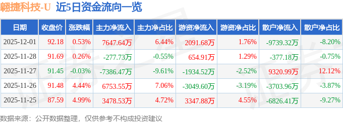 证券之星消息,截至2025年12月1日收盘,翱捷科技(688220)报收于92.18元,上涨0.53%,换手率3.64%,成交量13.11万手,成交额11.88亿元。