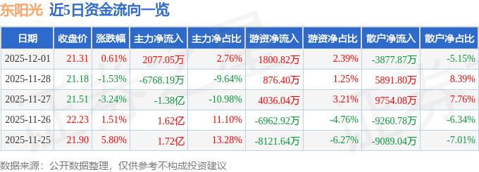 12月1日的资金流向数据方面,主力资金净流入2077.05万元,占总成交额2.76%,游资资金净流入1800.82万元,占总成交额2.39%,散户资金净流出3877.87万元,占总成交额5.15%。