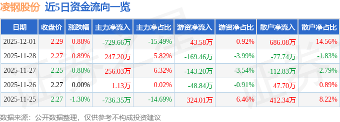 证券之星消息,截至2025年12月1日收盘,凌钢股份(600231)报收于2.29元,上涨0.88%,换手率0.73%,成交量20.58万手,成交额4711.73万元。